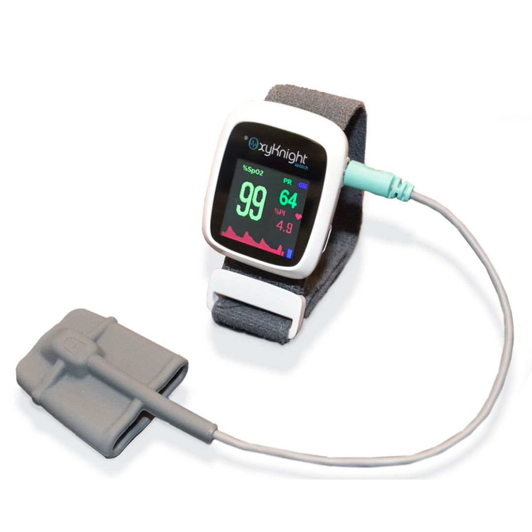 The OxyKnight® Watch is a smart sleep oximeter that continuously monitors oxygen levels to show overall sleep quality and cycle trends.