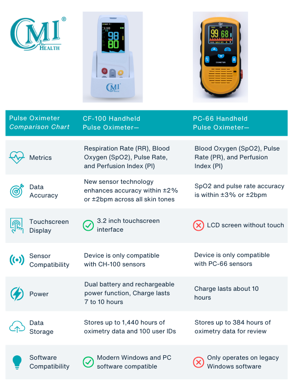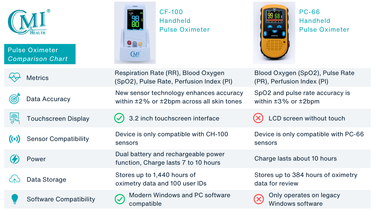 Check out our blog to learn more about the CH-100 Pulse Oximeter and how it differs from our PC-66 collection.